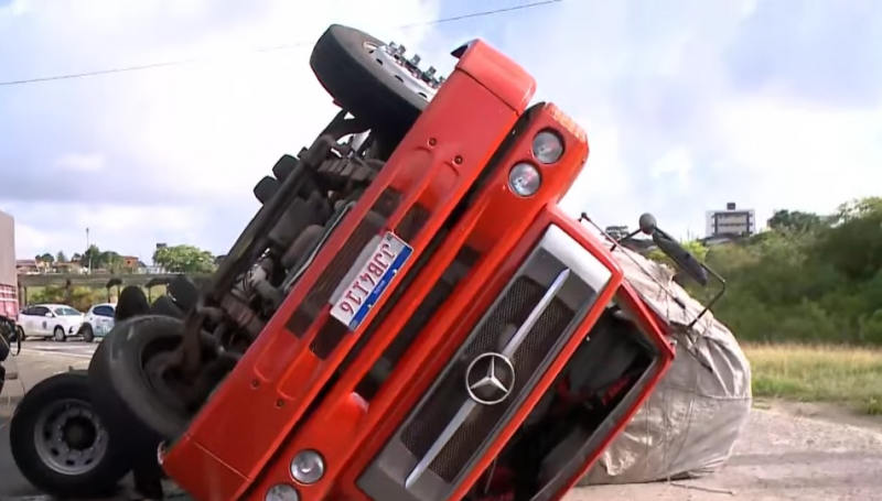 Um caminhão tombou em uma das alças do viaduto das Três Lagoas, próximo ao bairro de Oitizeiro, em João Pessoa, na manhã desta quinta-feira (11). O motorista do veículo ficou ferido e precisou ser atendido pelo Serviço de Atendimento Móvel de Urgência (Samu). A Polícia Rodoviária Federal (PRF) também foi acionada para controlar o trânsito na região.
