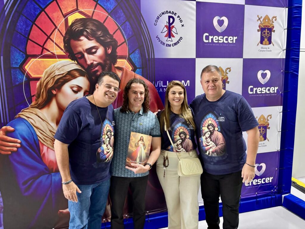 No Crescer, Veneziano foi recebido pelo Moderador da Comunidade Pio X, organizadora do evento, Gustavo Lucena; e pelo casal André Gomes (Secretário Municipal de Cultura) e Carol Gomes (Vereadora de Campina Grande).