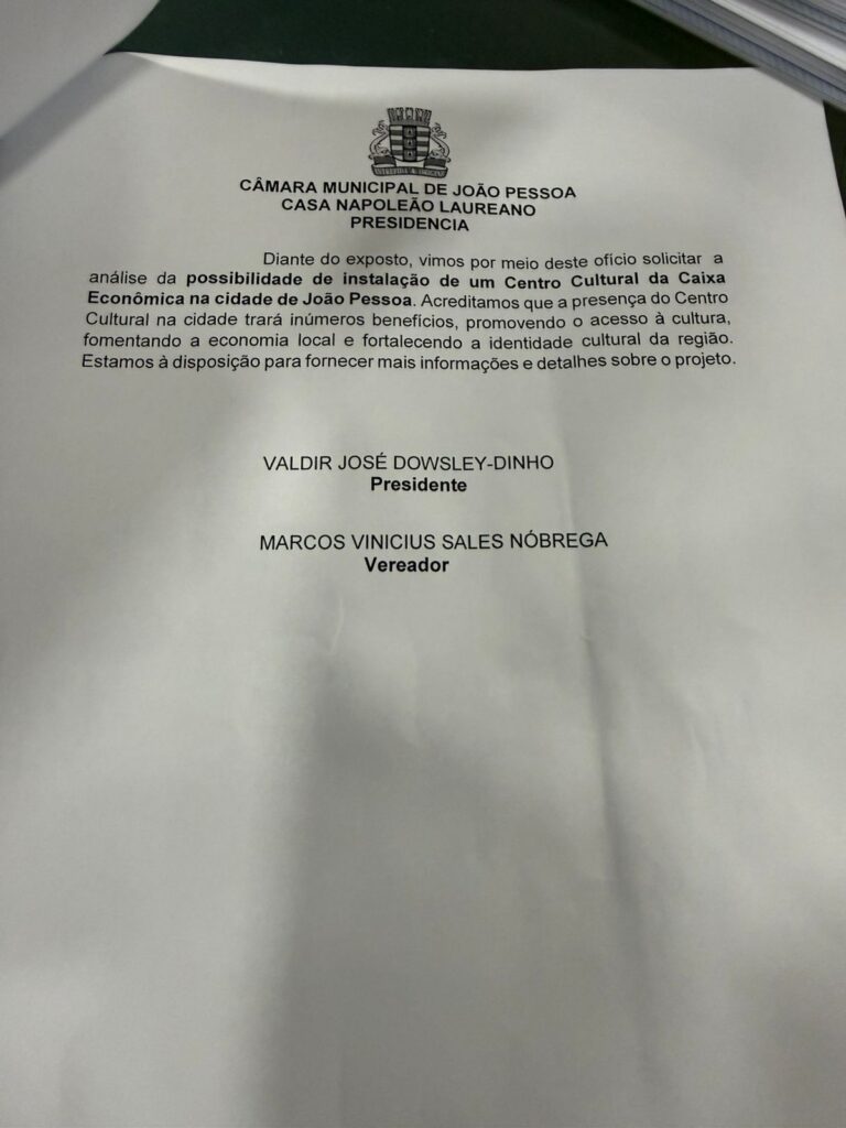 O ofício com o pedido direcionado à Caixa foi assinado e entregue pessoalmente a Carlos Vieira pelo presidente da Câmara de João Pessoa, Dinho Dowsley (MDB), e pelo vereador Marcos Vinícius (PDT). A audiência, em Brasília, ocorreu no dia 2 de julho do ano passado.